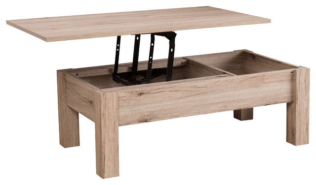 We love how simple the outside design looks, but when you peak into the inside, you can see exactly how it's made! Surely, a coffee table with a storage shelf underneath its top is nothing unusual. New coffee table brown solid wood. This contemporary style wooden table is as strong and sturdy as it looks with firm grounding.